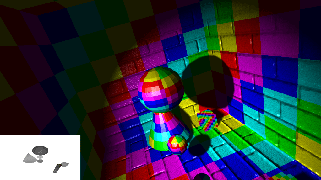 A 3D pipeline that is directed towards debugging. The effects that we seek are not visually appealing, we just want to visualize enough information for us to be able to efficiently debug, test and optimize with other tools: Bounding Volumes, Bounding Volume Hierarchies, Gilbert-Johnson-Kirthii Algorithm for Convex Shape Collisions and KD Trees for intersection acceleration.