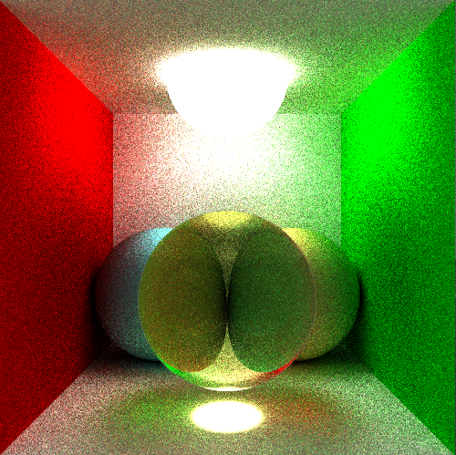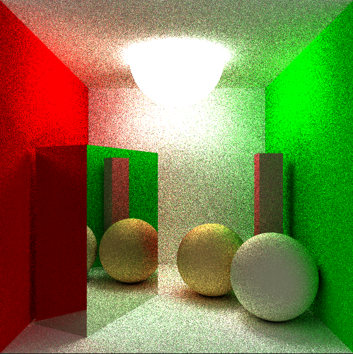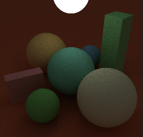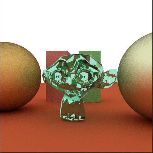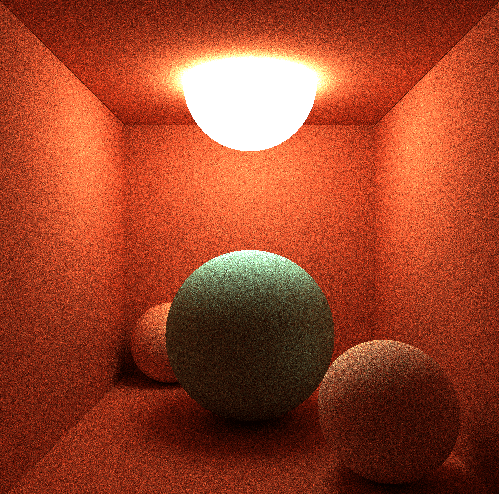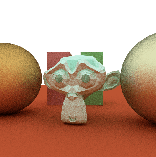 During this part of the project I added how Diffuse materials would behave. I considered the material fully opaque and made the light bounce according to the normal of the surface, fully reflecting the ray to the outside. With a threshold of bounces per sample I achieved a limit for performance to ensure that recursion would not go infinitely on, also achieving correct representation of the material.